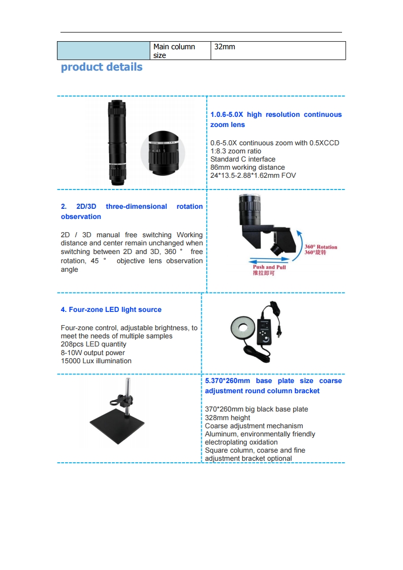 ◆ Magnification factor: 20-190 times continuously adjustable;